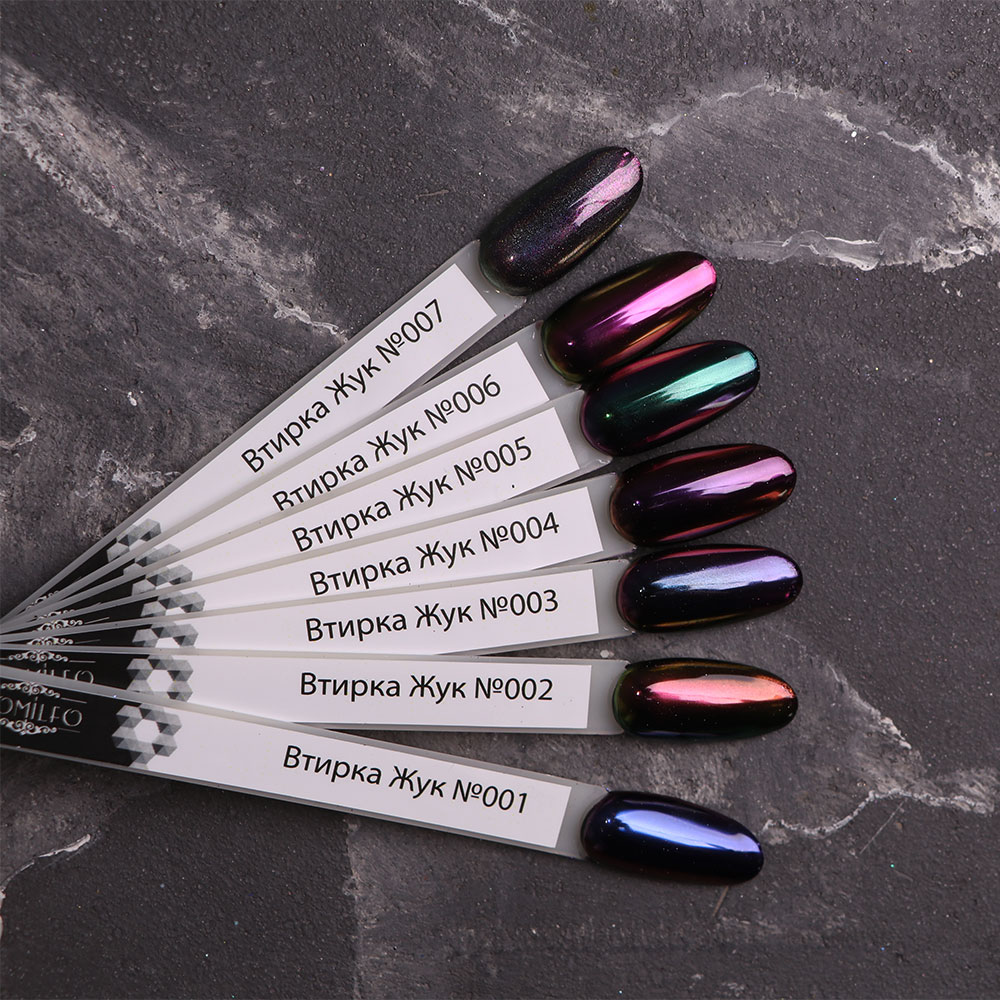 Komilfo втирка — це ультратонкий пудровий пігмент, який дозволяє створити розкішний дзеркальний або перламутровий ефект на нігтях. Вона ідеально підходить для створення модного акценту в будь-якому дизайні — від класичного до експериментального nail-art. Широка палітра дозволяє вибрати ефект за бажанням — металік, хамелеон, перли, дзеркало, сяйво.