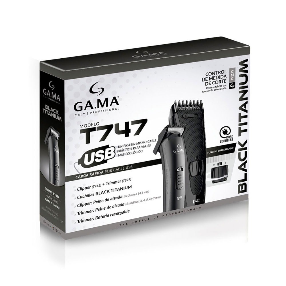 Машинка для стрижки волосся GA.MA Black Titanium T742, завдяки направляючому гребеню, що входить в комплект, дозволяє створювати різні моделі стрижок, оскільки регулювання зрізу волосся варіюється від 3 мм до 14,5 мм. При використанні без спрямовуючого гребеня висота зрізу становить 0,8 мм. Машинка також оснащена системою філіровки волосся для зменшення їх обсягу.