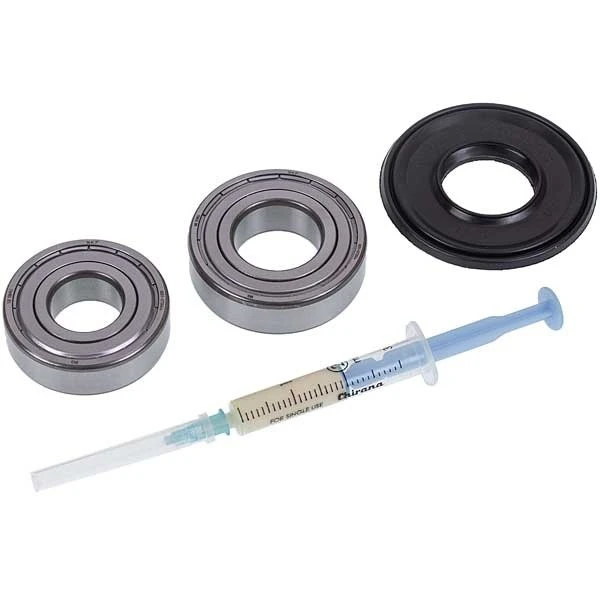 Комплект підшипників для пральної машини — це набір деталей, призначений для відновлення вузла обертання барабана. Підшипники відповідають за плавне і тихе обертання барабана, знижують рівень вібрації та зношування. З часом вони можуть виходити з ладу через постійні навантаження та контакт з водою, що проявляється шумом, стуком і люфтом барабана. Використання ремонтного комплекту дозволяє замінити зношені елементи, відновити герметичність і працездатність механізму, продовжити термін служби пральної машини та уникнути дорогого ремонту або заміни бака.
