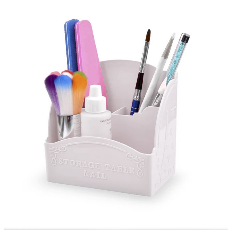 Зручна та практична підставка для пензлів та пилок пластикова, в якій можна зберігати пензлики, дотси, пилки та інші допоміжні атрибути. Підставка виготовлена ​​із якісного легкого, але дуже міцного пластику з видавленими малюнками та написами. Великий плюс такої підставки для пензлів та пилок у тому, що при падінні вона не розіб'ється і буде довго, надійно служити Вам багато років.