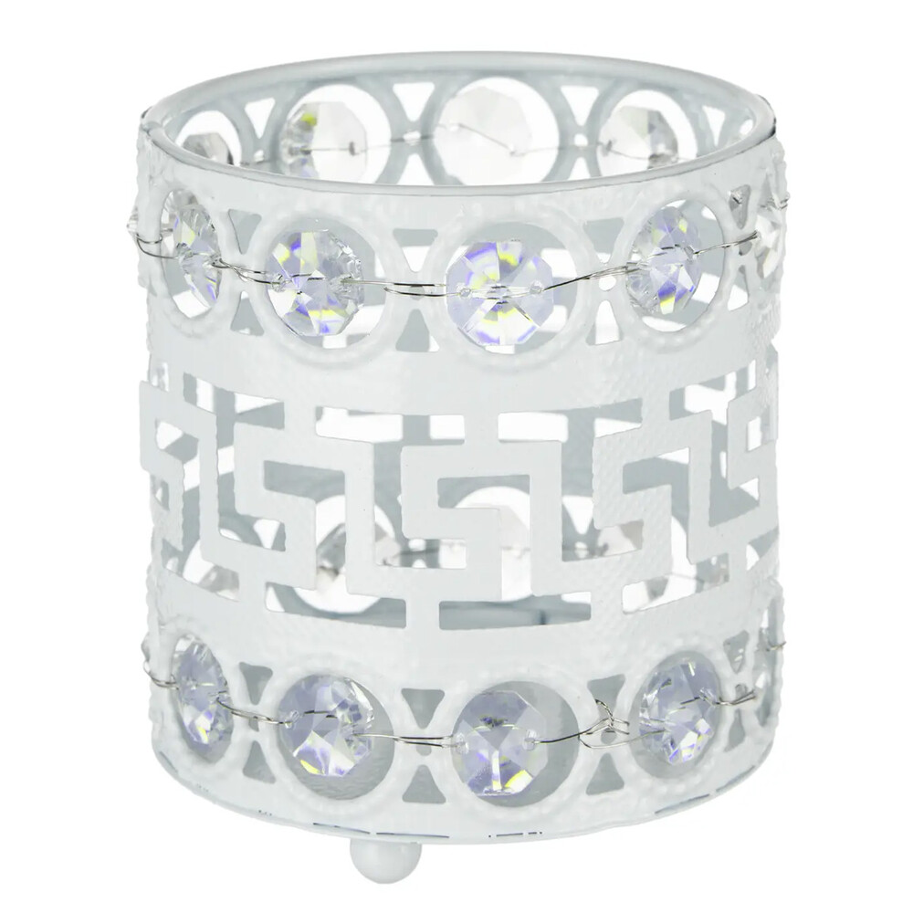 Склянка для манікюрних інструментів Crystal 055 круглий металевий з камінням, білий.