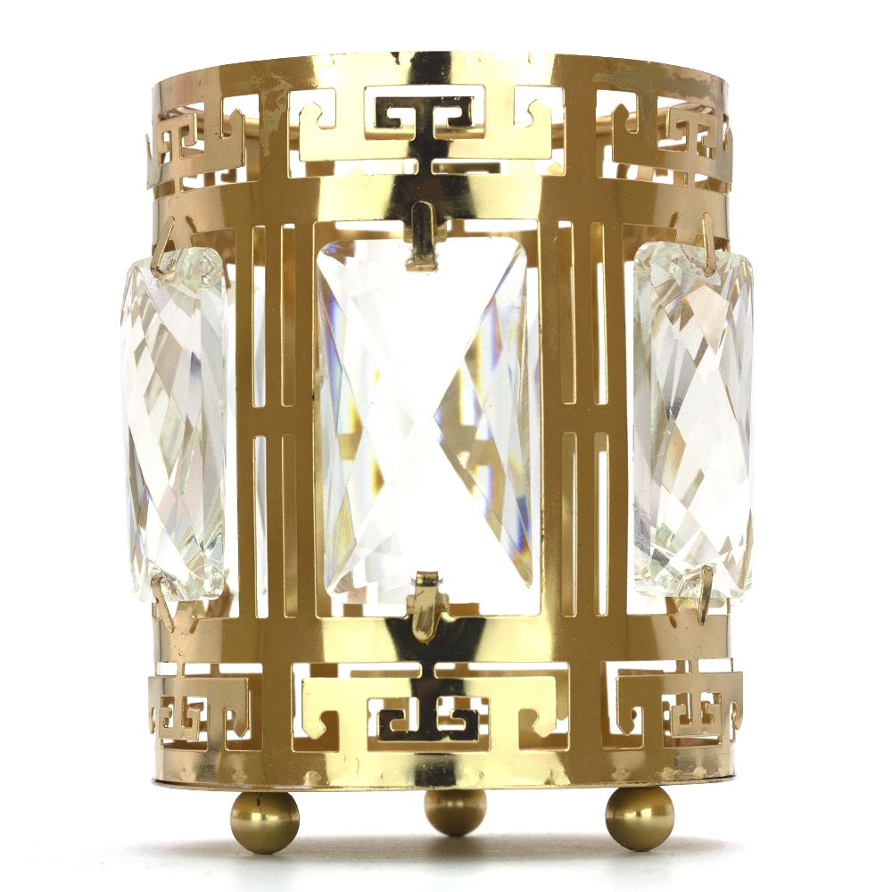 Склянка для манікюрних інструментів YRE Основа склянки зроблена з металу. Декор у вигляді акрилових кристалів зробить її додатковою окрасою робочого столу. Знизу має три невеликі ніжки. Склянка досить важка і стійка. Можна використовувати для зберігання пензликів, пилок, пушерів іншого манікюрного або канцелярського приладдя, косметики. Діаметр становить 8 см, висота - 12 см.