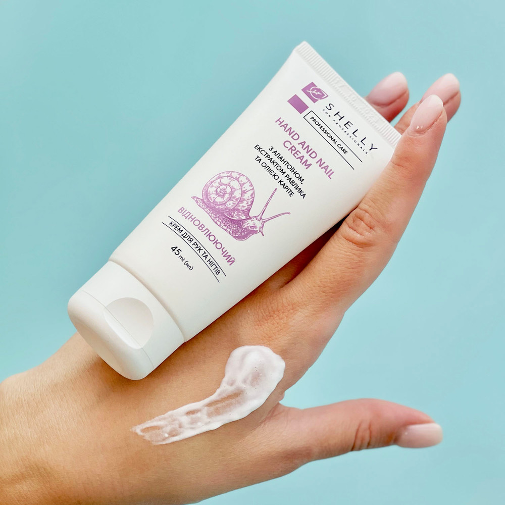 Крем для рук та нігтів з алантоїном, екстрактом равлика та олією каріте Shelly 45 мл