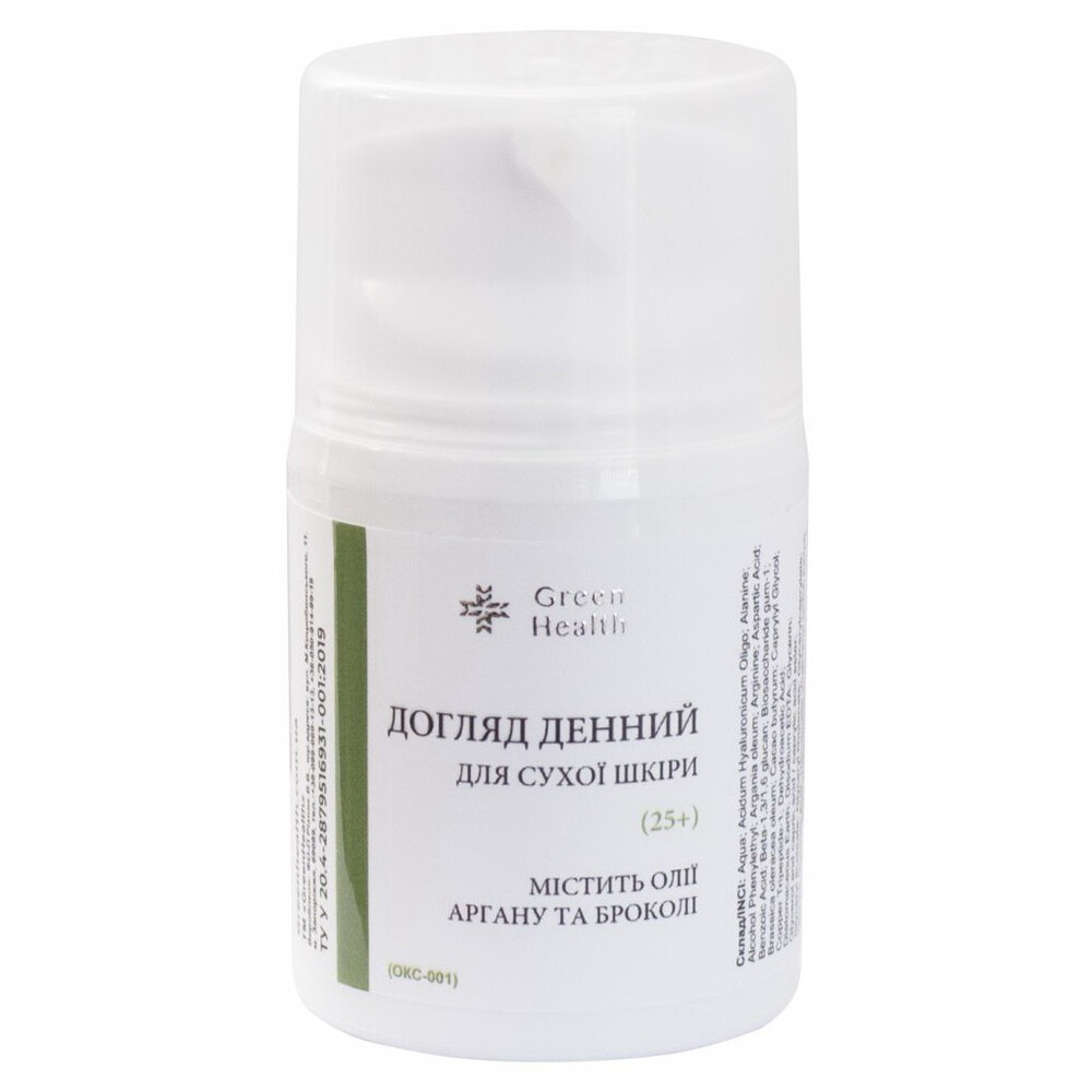 Крем денний для сухої шкіри мульти-антиоксидантний, з оліями аргану та броколі (25+) Green Health ОКС-001, 30 мл