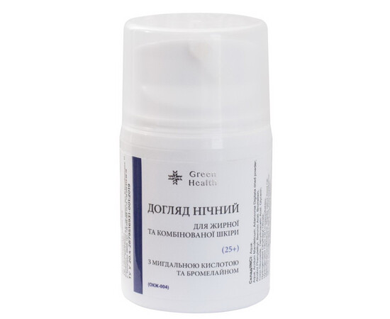 Крем нічний для жирної та комбінованої шкіри з мигдальною кислотою та бромелайном (25+) Green Health ОКЖ-004, 50 мл