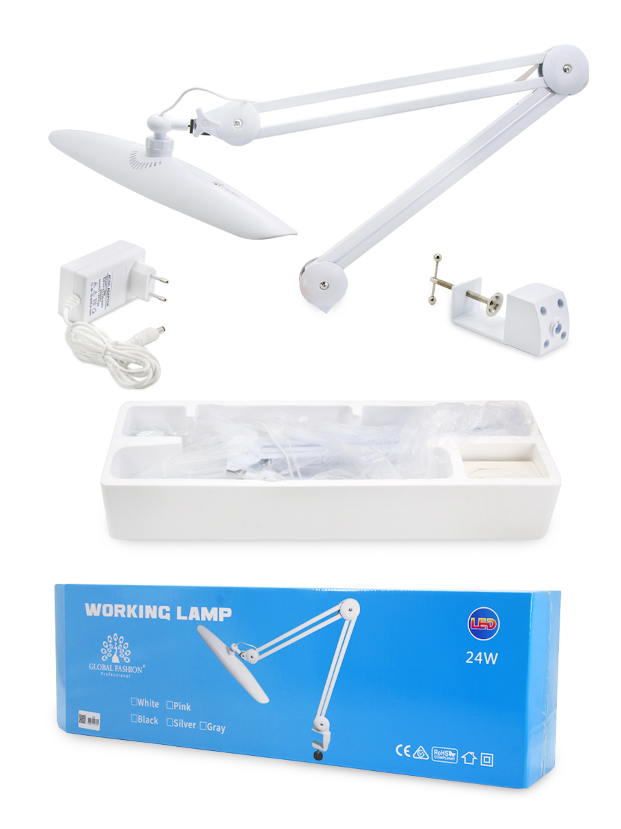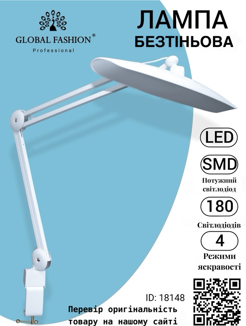 Настільна світлодіодна безтіньова лампа Global Fashion, потужністю 24 Вт, призначена для освітлення робочого місця, що ідеально підходить для професійних б'юті-майстрів.