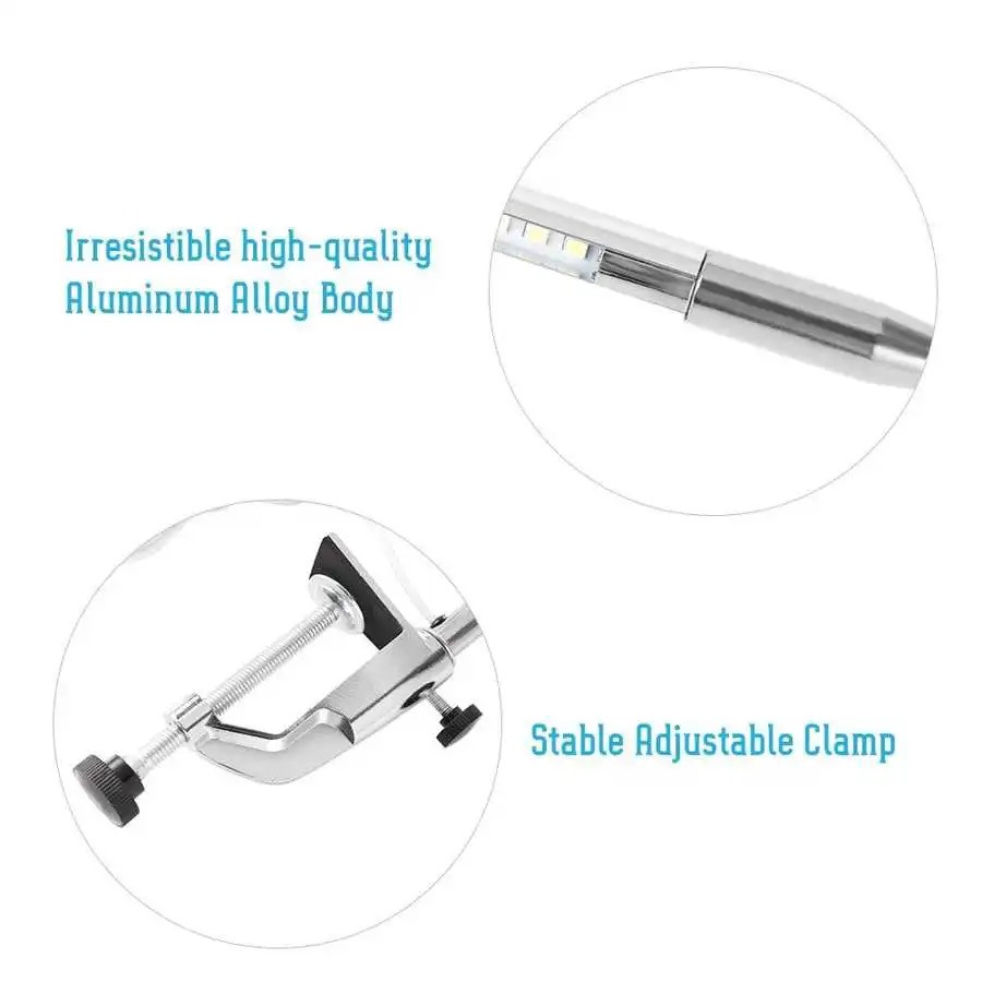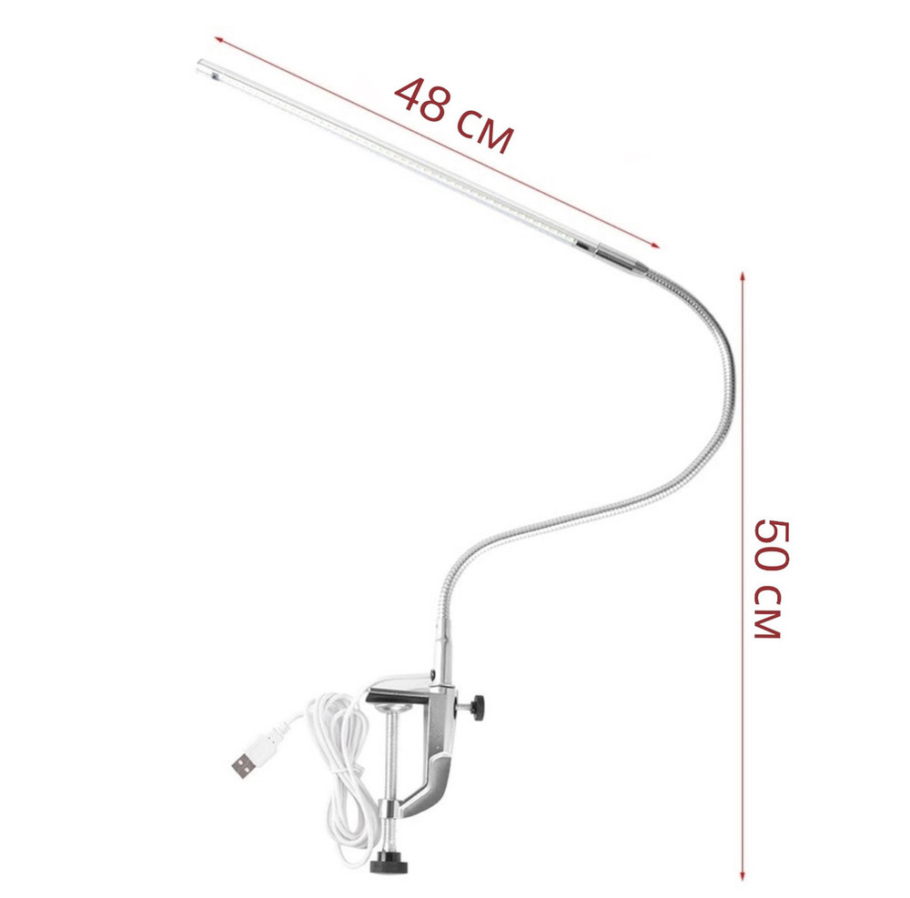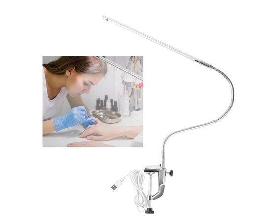 Гнучка настільна LED лампа FS-119 для освітлення (на струбціні, металева, срібна), 10 Вт.