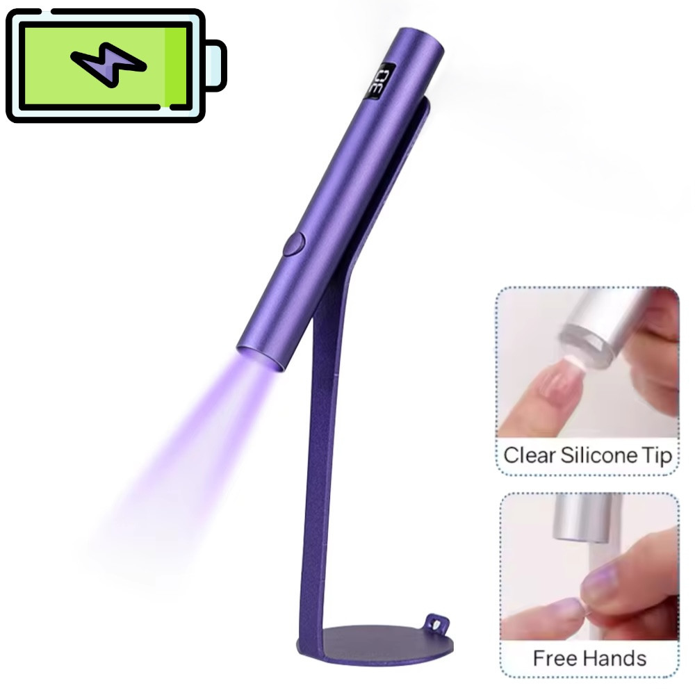 UV/LED лампа Led 3 для сушіння нігтів, верхніх форм, декору - на акумуляторі та магнітній підставці (фіолетова), 3 Вт.