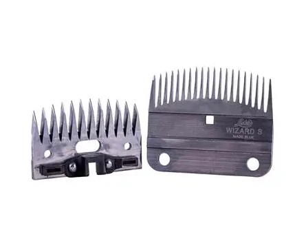 Набір лез Wizard 'Schaf' - 20 зубців. Цей набір лез був розроблений для перетворення машинки для стрижки коней у машинку для стрижки овець. Похилий кінчик створений за моделлю гребінця для стрижки овець, що забезпечує легке введення у вовну та гребінець.