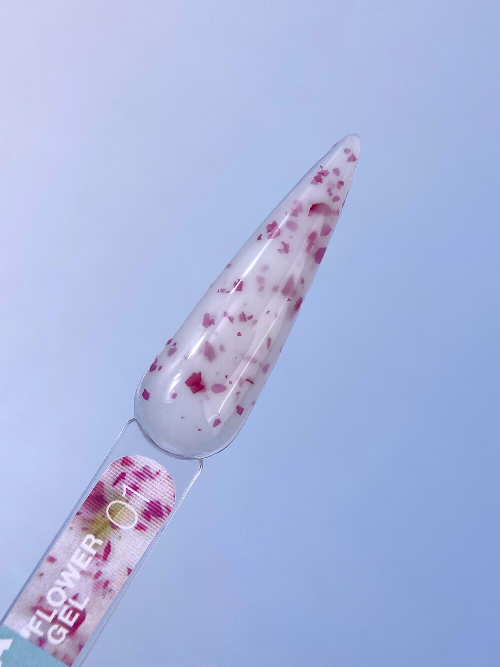 Гель для нарощування Flower Gel — це гель із сухоцвітами на молочній основі, призначений для моделювання, укріплення та нарощування.