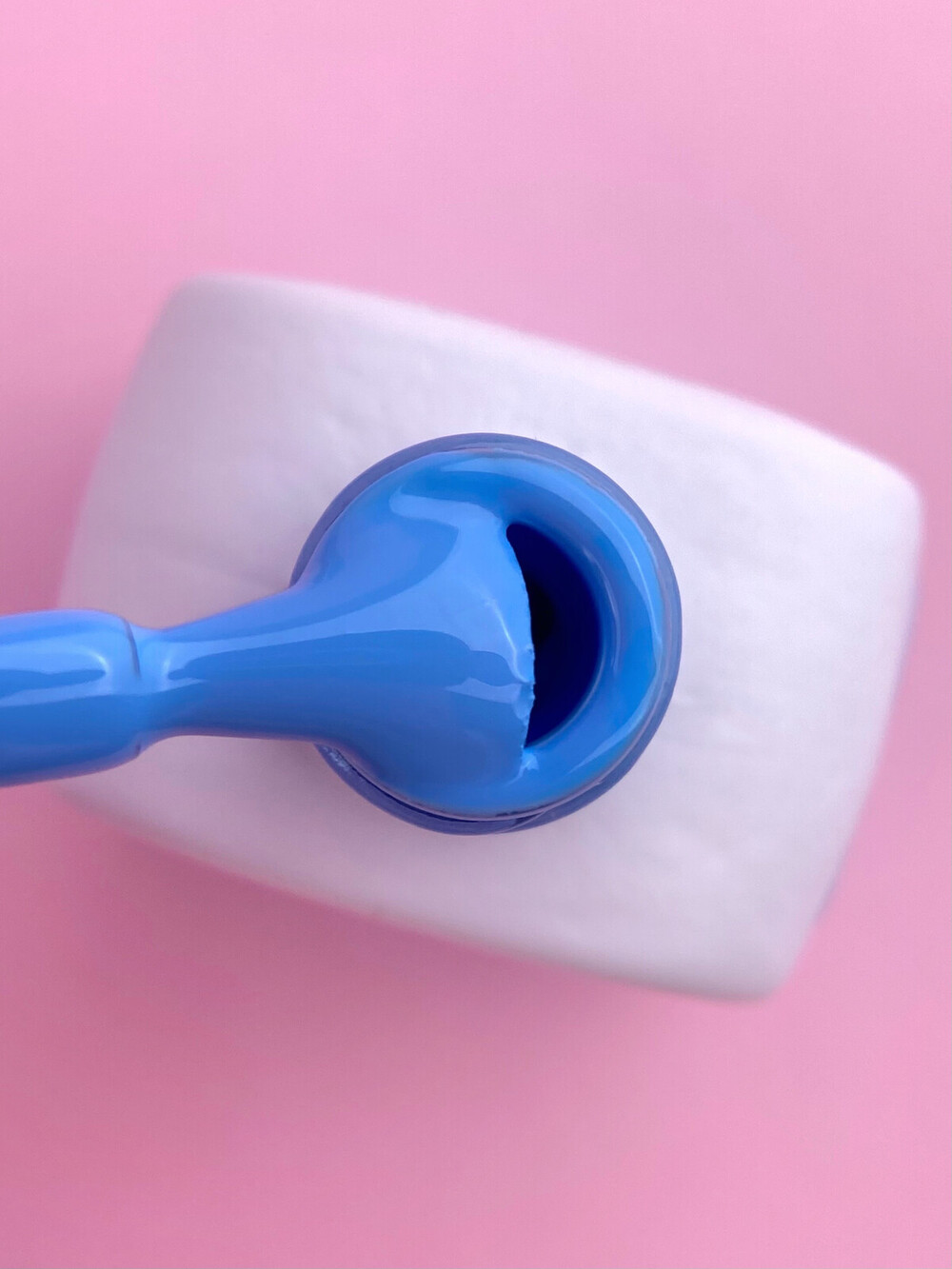 - Наносимо гель-лак (1-2 тонких шари). Набираємо матеріал на пензлик, промальовуємо центр нігтя, а потім бокові стінки.