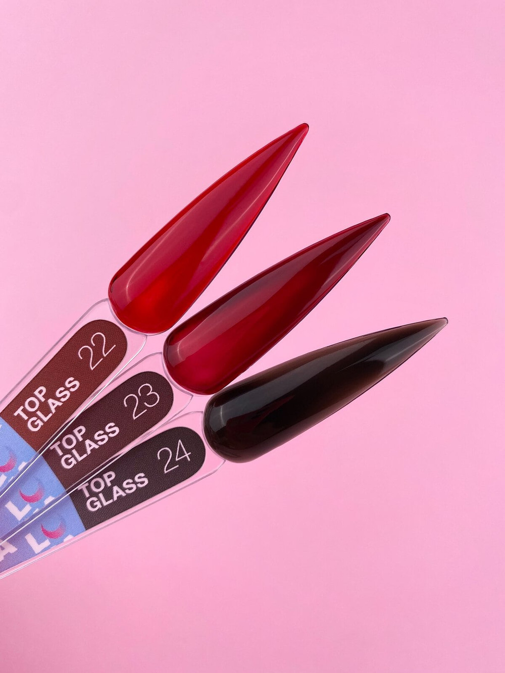Тоp Glass — це кольоровий топ без липкого шару, який тримає блиск до 4-х тижнів. Топи Glass мають велику палітру з 10 найтрендовіших відтінків на будь-який смак.