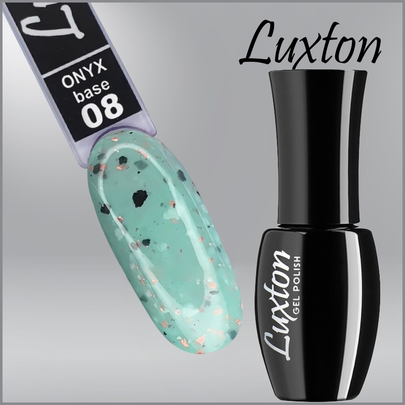 Камуфлююча база LUXTON Onyx Base 8, м'ятна з чорними пластівцями і персиковою поталлю, 10мл - неймовірна, розкішна, база з поталлю стане запорукою гарного, стійкого манікюру, який радуватиме його власницю довгий час, не втрачаючи естетичної привабливості, надаючи доглянутості жіночим рукам. В'язкий, густий матеріал без проблем розподіляється по нігтьовій пластині, не допускаючи прогалин, пропусків, вирівнює її поверхню, приховує невеликі дефекти, пігментні та інші плями на нігті, непривабливі відтінки. Рівномірне нанесення тонкого шару покриття дозволяє виконувати маленький пензлик, зручної форми, а стильний флакон з логотипом компанії має оптимальний об'єм, забезпечуючи комфортність у нанесенні професійного засобу.