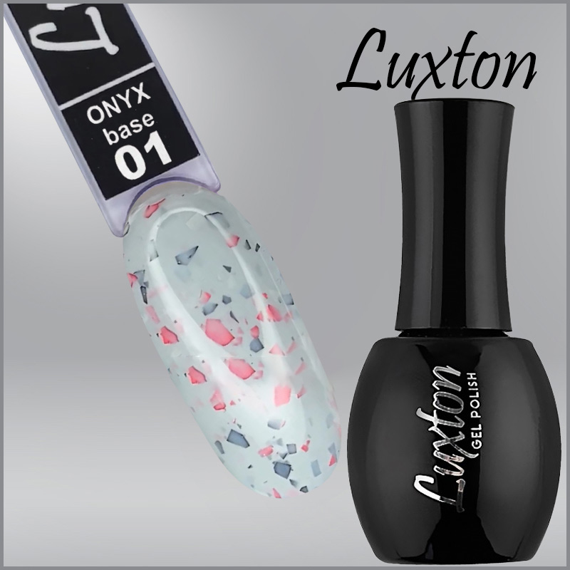 Камуфлююча база LUXTON Onyx Base 1, сіра з червоно-сірою поталлю, 15мл - неймовірна, розкішна, база з поталлю стане запорукою гарного, стійкого манікюру, який радуватиме його власницю довгий час, не втрачаючи естетичної привабливості, надаючи доглянутості жіночим рукам. В'язкий, густий матеріал без проблем розподіляється по нігтьовій пластині, не допускаючи прогалин, пропусків, вирівнює її поверхню, приховує невеликі дефекти, пігментні та інші плями на нігті, непривабливі відтінки. Рівномірне нанесення тонкого шару покриття дозволяє виконувати маленький пензлик, зручної форми, а стильний флакон з логотипом компанії має оптимальний об'єм, забезпечуючи комфортність у нанесенні професійного засобу.