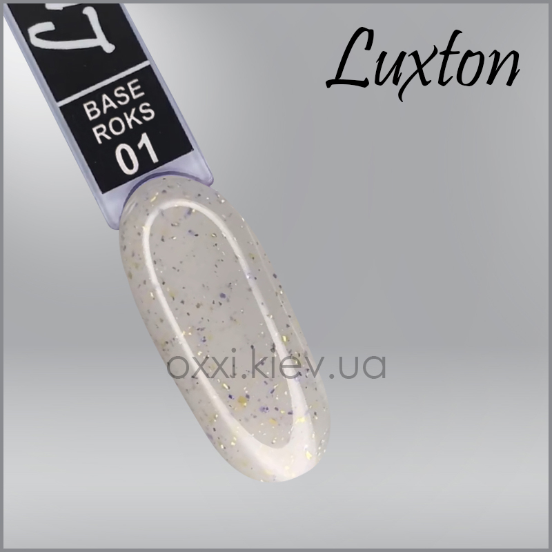 Камуфлююча база LUXTON Roks Base 15 мл, № 1 молочний з міксом блискіток і слюди золотого та бузкового кольору