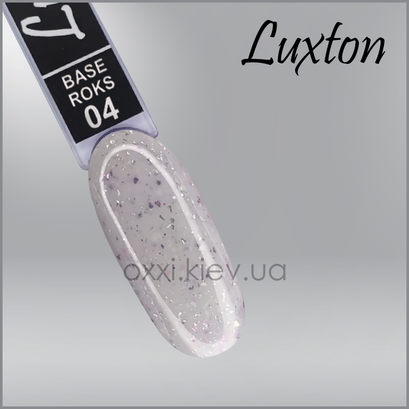Купити Камуфлююча база LUXTON Roks Base 15 мл, № 4 молочний з міксом блискіток і слюди сріблястого, білого та бузкового кольору, ви зможете у нашому інтернет-магазині limonad з доставкою по всій Україні в тому числі і Київ, Дніпро, Одеса, Харків, Запоріжжя, Одеса, Львів та багато інших населених пунктів.