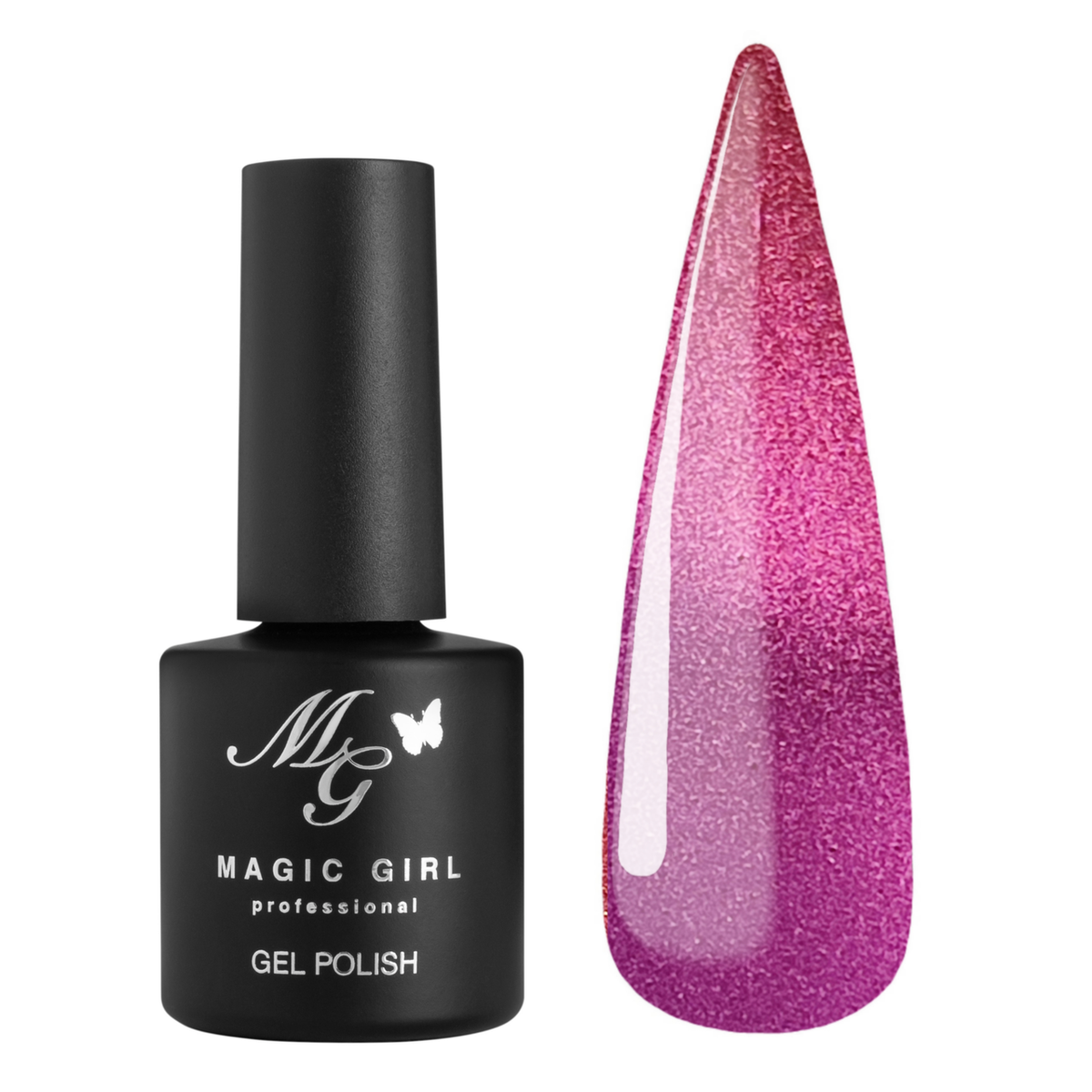 У складі цього гель-лаку знаходяться дуже маленькі металеві частинки, які реагують на дію магніту, забезпечуючи таким чином красивий перелив відтінку.