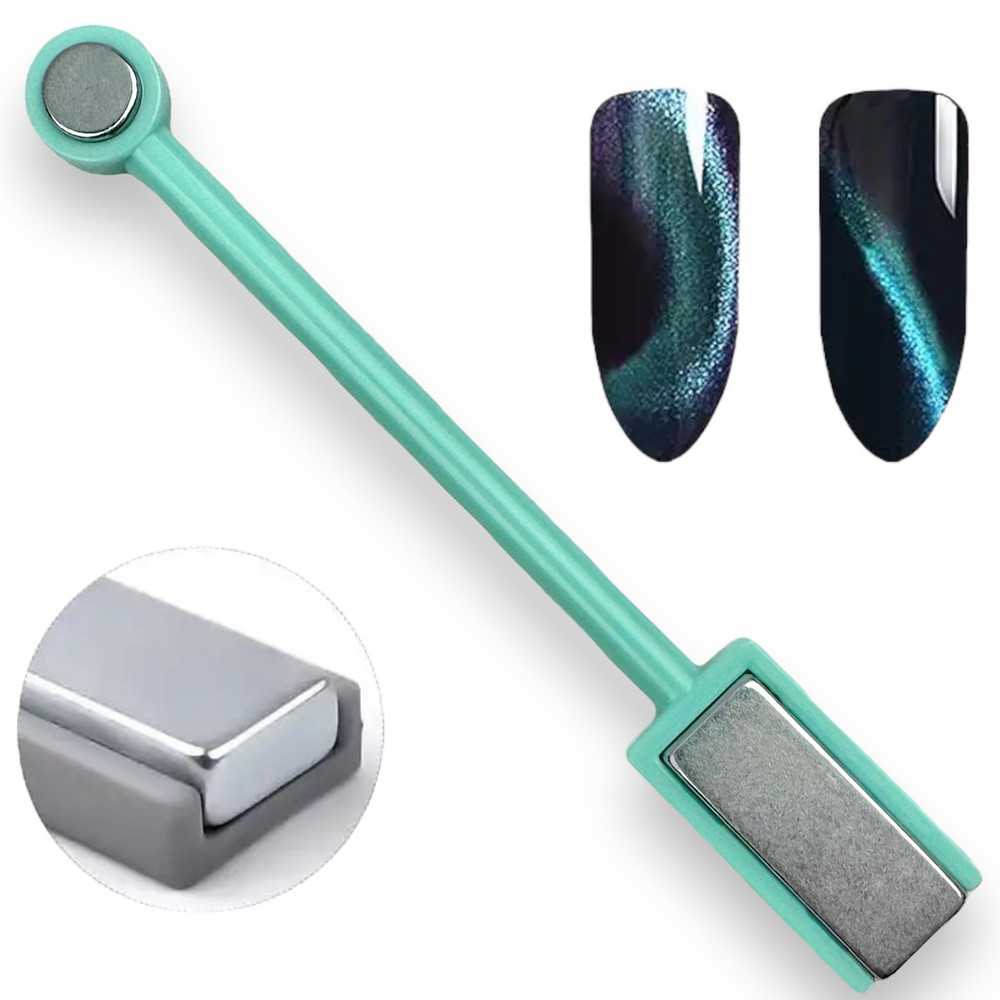 Застосовується разом із спеціальними магнітними гель-лаками 3D Cat Eye. Його потрібно піднести до магнітного гель-лаку (непросушеного!) і тримати на відстані 3-5 міліметрів протягом 5-10 секунд. Для створення відблиску тримайте магніт в одному положенні, для створення візерунків, водночас керуйте магнітом над не висохлим гель-лаком. Для зручності дизайну прямокутний магніт знімається.