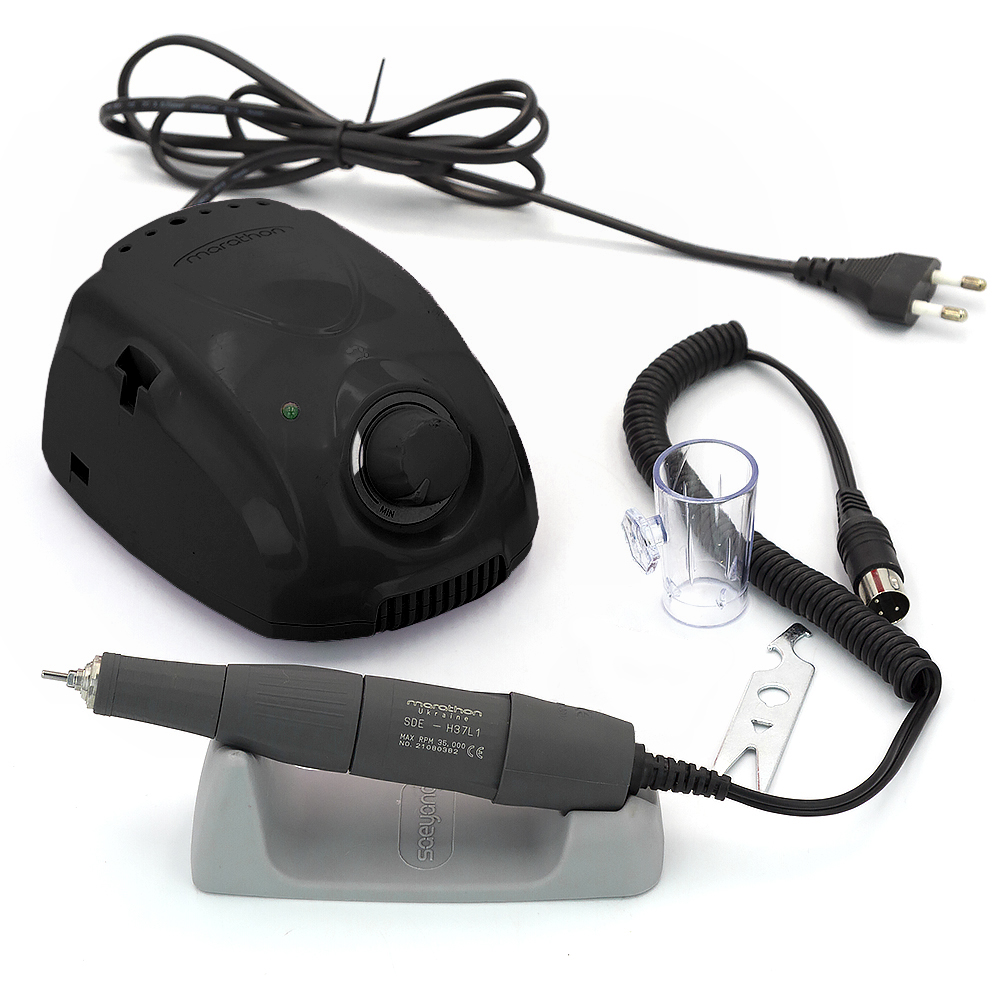 Фрезер Marathon 3 Champion відмінно підійде як для нарощених нігтів, так і для натуральних. Фрезер регулює швидкість обертання насадок і працює від мережі. Апарат для манікюру відрізняється від інших фрезеров тим, що: