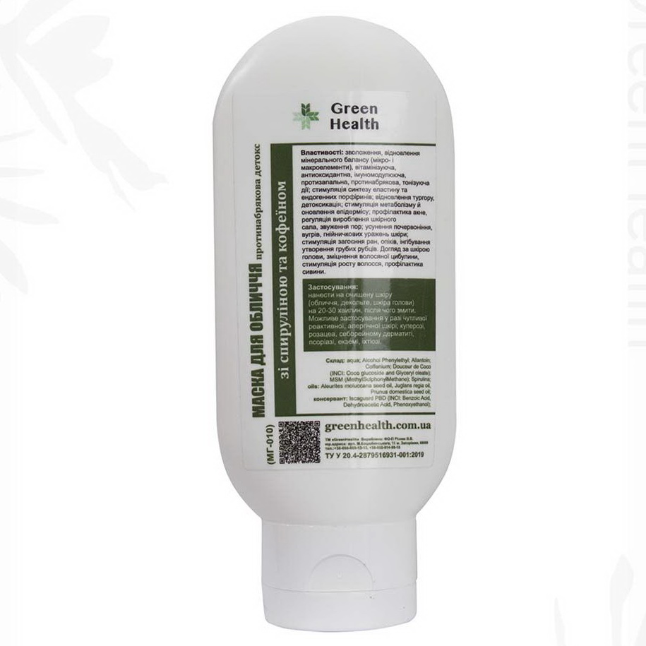 Маска для обличчя протинабрякова детокс зі спіруліною та кофеїном Green Health МГ-010, 100 мл