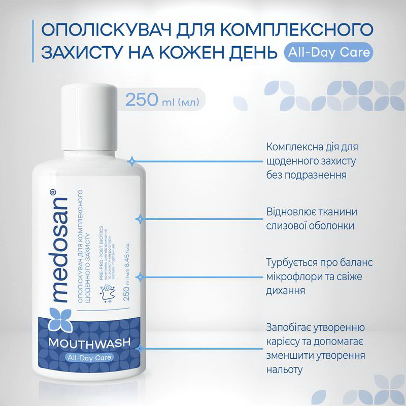 Переваги та особливості ополіскувача для комплексного щоденного захисту Medosan®All-Day Care Medosan: