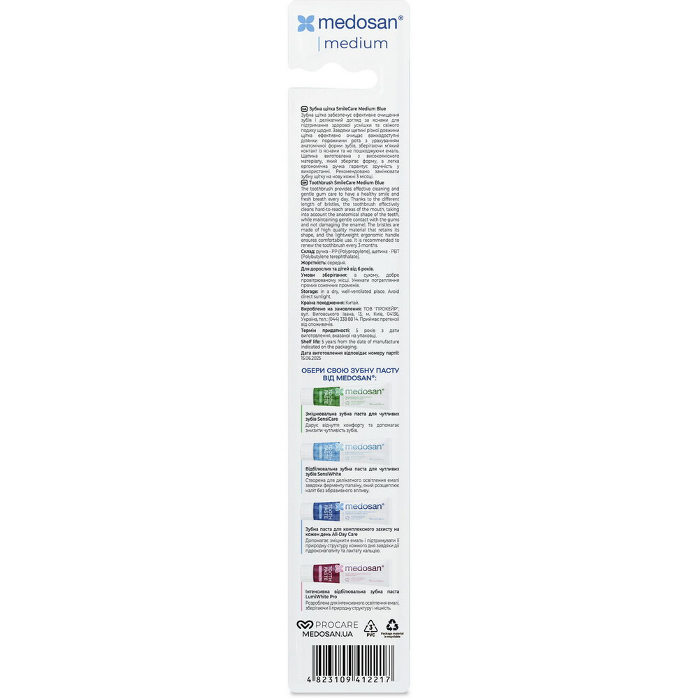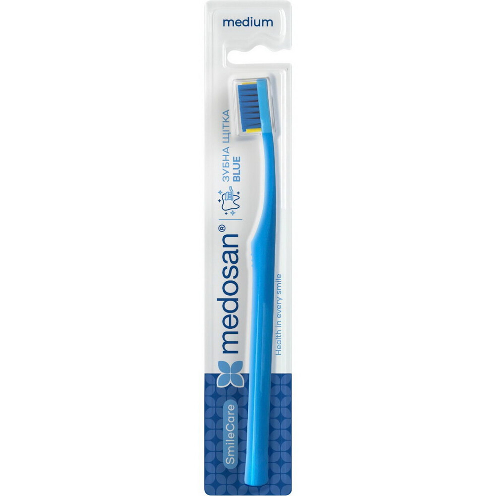 Купити Зубна щітка Medosan SmileCare Medium Blue, ви зможете у нашому інтернет-магазині limonad з доставкою по всій Україні в тому числі і Київ, Дніпро, Одеса, Харків, Запоріжжя, Одеса, Львів та багато інших населених пунктів.