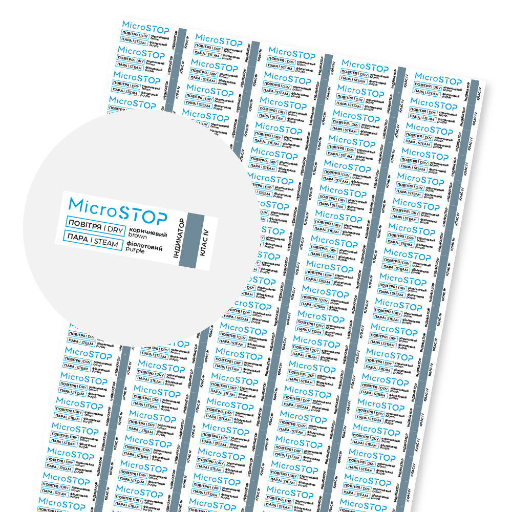 Двофакторні індикатори MicroSTOP для контролю стерилізації (повітря/пара), 100 шт/лист