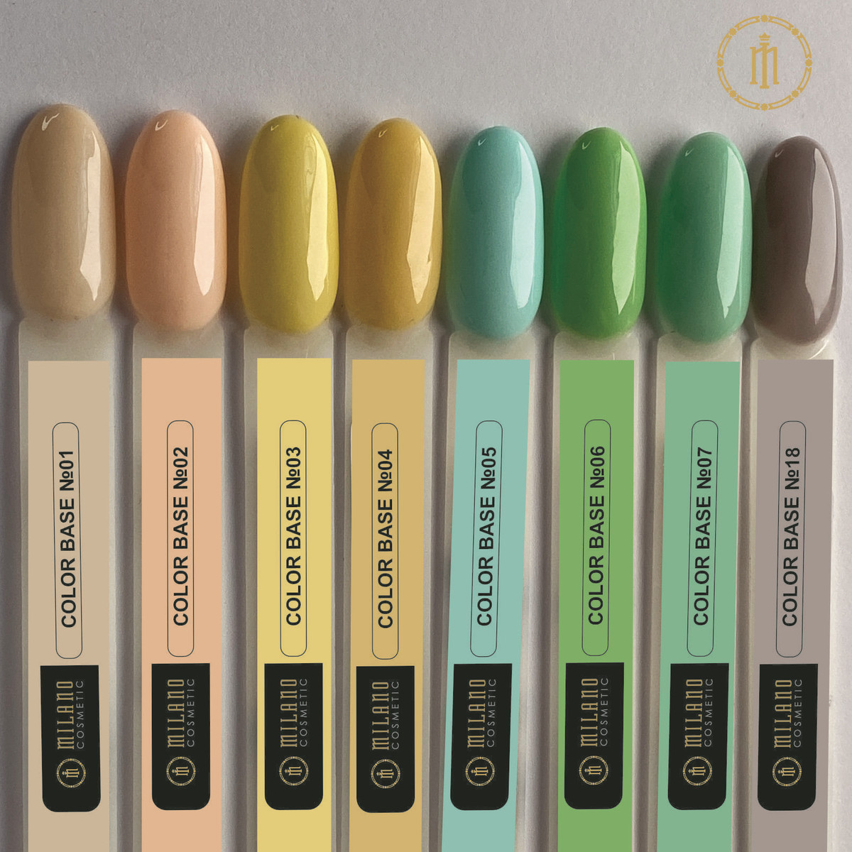 Кольорова база Milano 8 мл за рахунок еластичної каучукової основи має виражений зміцнюючий та вирівнювальний ефект, запобігає сколам і тріщинам. Може використовуватися як базовий гель при моделюванні штучних нігтів, для вирівнювання та зміцнення натуральних нігтів як основа під гель-лак.