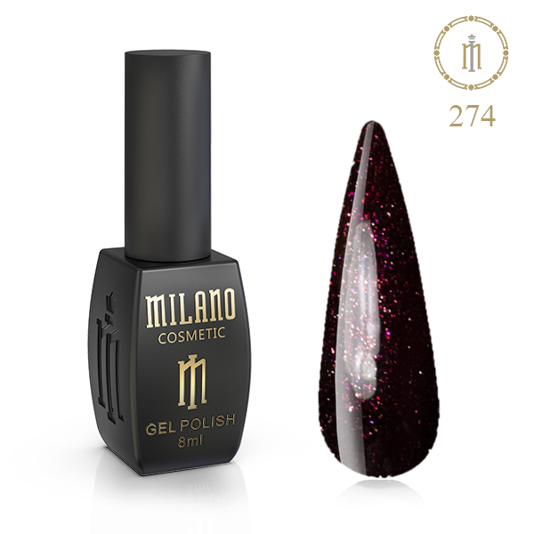 Матеріал відрізняється високою щільністю та приємною гелевою текстурою, за рахунок чого добре лягає на нігтьову пластину. Наносити лак Milano 8 ml можна в один або два шари. Глянцевий фініш підкреслить естетичність манікюру та додасть блиску. Лаки продаються у зручних флаконах з пензликом, з її допомогою можна швидко нанести покриття. Для закріплення нігті потрібно витримати в ультрафіолетовій лампі 2 хвилини, в LED лампі – 30 секунд.