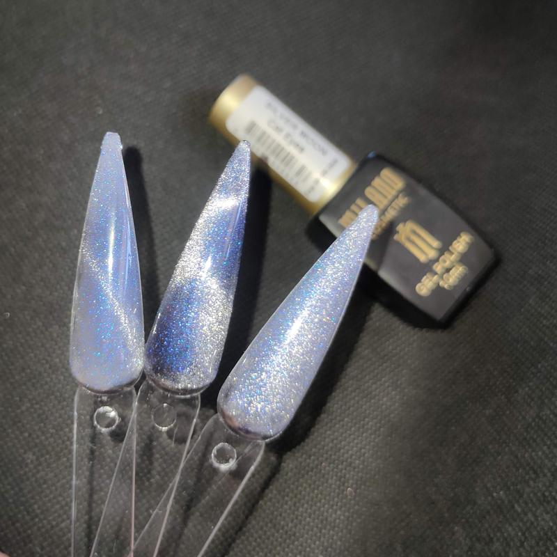 Гель лак Сat Eyes (SILVER MOON) 10 мл відноситься до блискучої колекції якісних гель-лаків Cat Eye TM Milano Cosmetic. Назва даного гель-лаку для нігтів асоціюється з полярним каменем, що нагадує око кота з вертикальною зіницею.