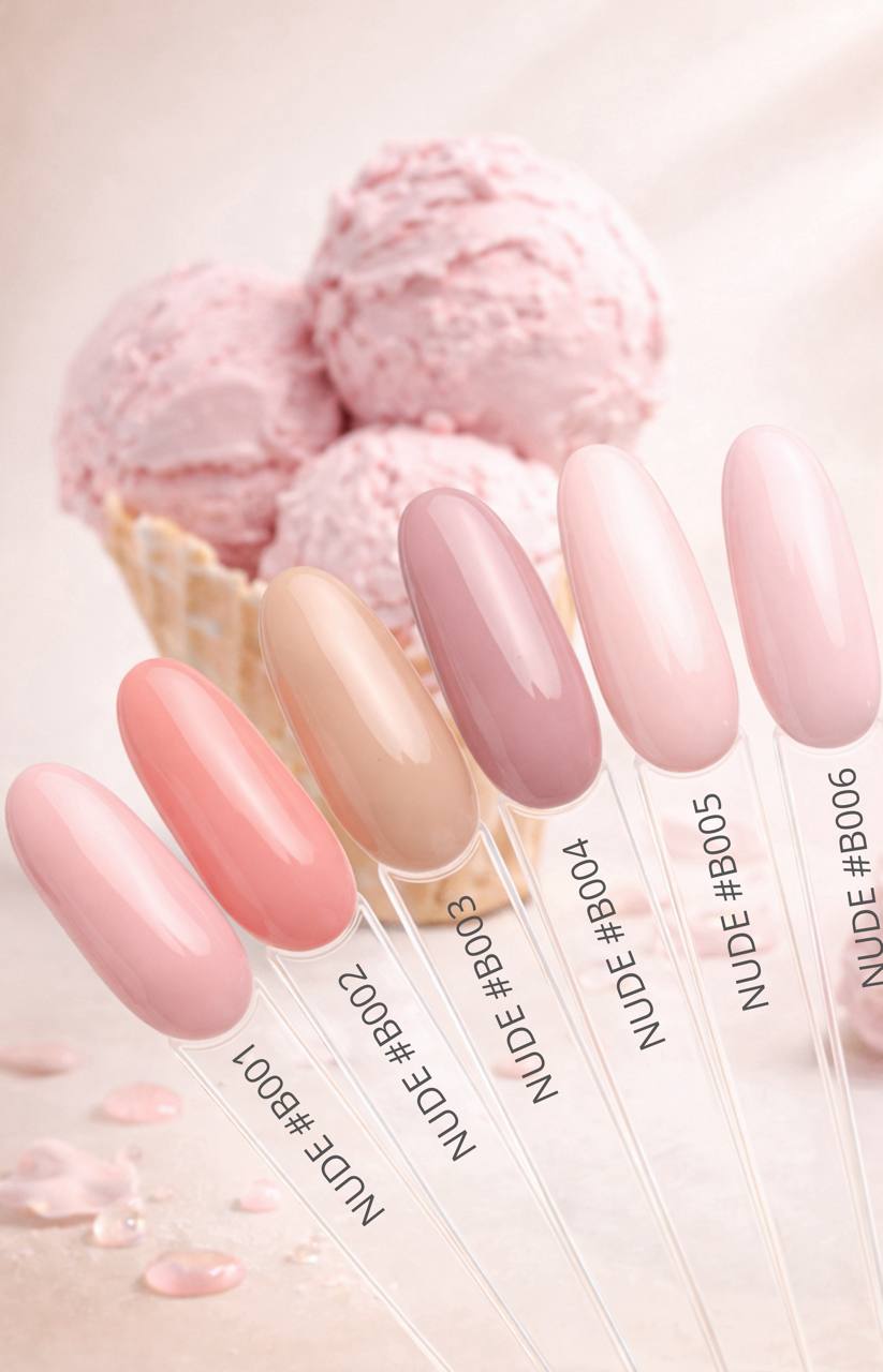 - NUDE B: нанесіть 1–2 тонкі шари гель-лаку для досягнення бажаної щільності.