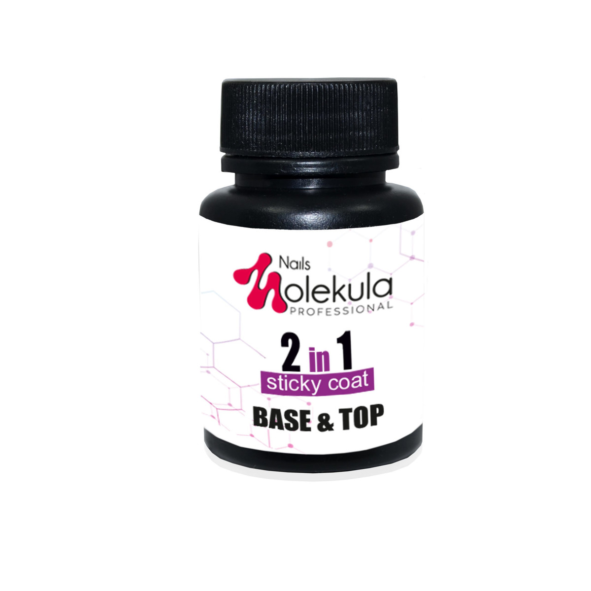 Nails Molekula 2 in 1 Base Top - база та топ в одному флаконі. Виконує функцію міцної основи під гель-лак та гарного стійкого фінішу. Завдяки інноваційній формулі усуває ризик відшарування гель-лаку, появи сколів, тріщин, сприяє збереженню естетичного виду покриття протягом тривалого часу. Має залишкову липкість.