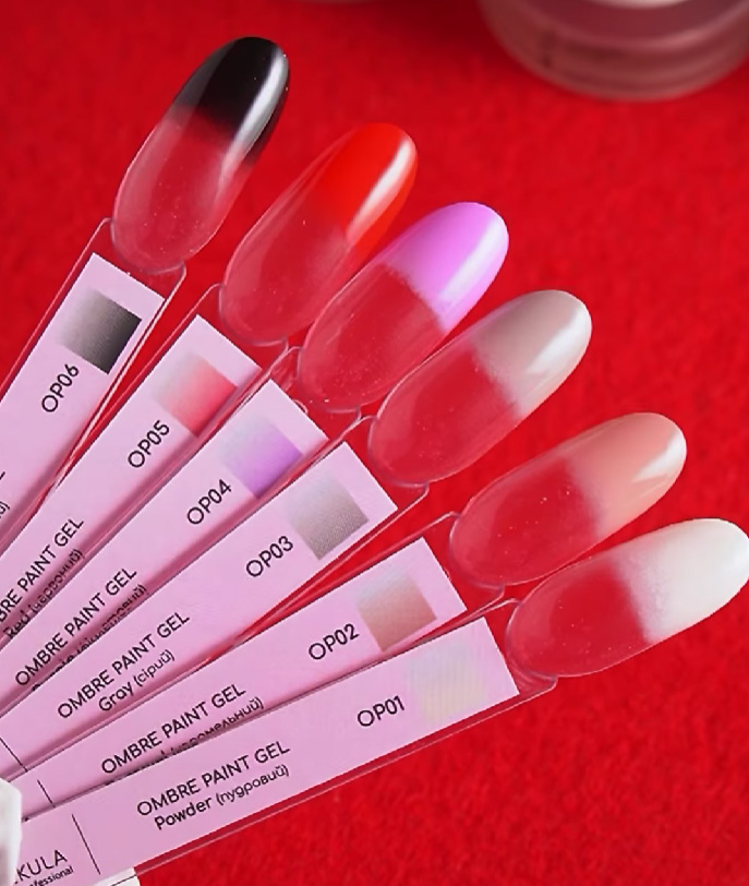 Кольори легко комбінуються між собою та дозволяють нашаровувати відтінки для глибини омбре.