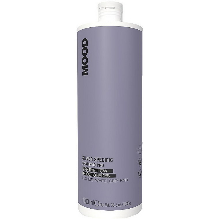 Купити Шампунь, який нейтралізує жовтизну Mood Silver Specific Shampoo Pro, 1000 мл, ви зможете у нашому інтернет-магазині limonad з доставкою по всій Україні в тому числі і Київ, Дніпро, Одеса, Харків, Запоріжжя, Одеса, Львів та багато інших населених пунктів.