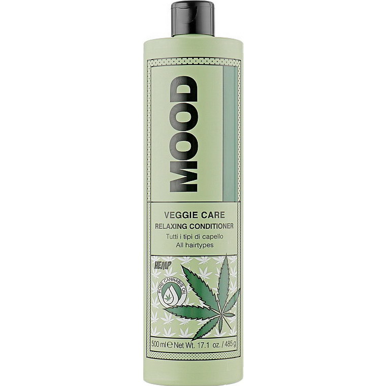 Veggie Care бренда Mood — лінійка доглядових засобів, виготовлена на основі олії канабісу, яка ідеально підійде для веганів і тих, хто піклується про довкілля. Розслаблювальний кондиціонер для волосся з цієї серії також збагачений натуральним цукром та олією макадамії, чия синергія забезпечує розгладжувальну і зволожувальну дії. Цей косметичний продукт призначений для догляду за всіма типами пасм, а також може використовуватись на повсякденній основі.