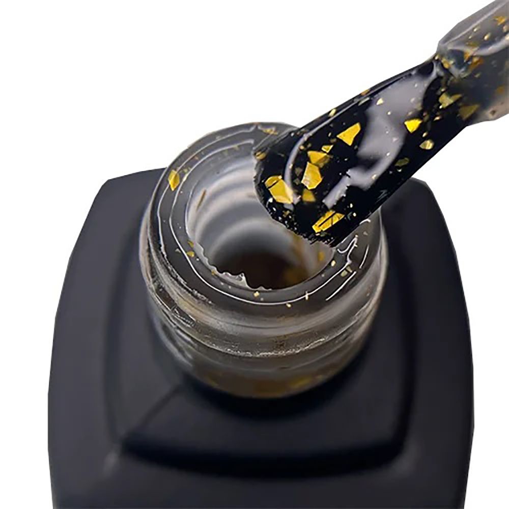 - золотиста крихта всередині має різну форму та розмір, роблячи манікюр сяючим та незвичайним;