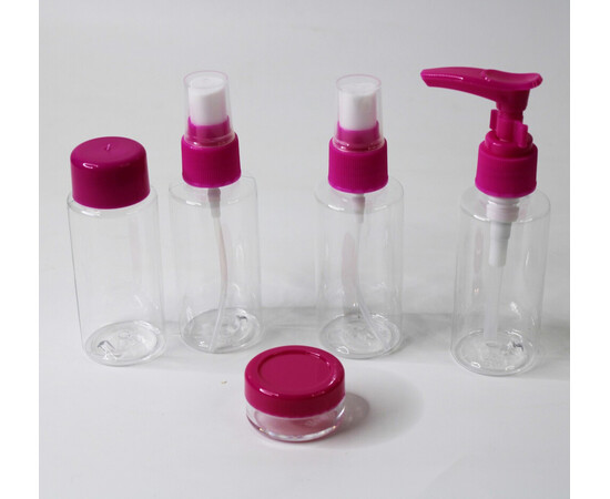 Дорожній набір ємностей для косметики та парфумерії №2422, 5 предметів, маліновий
