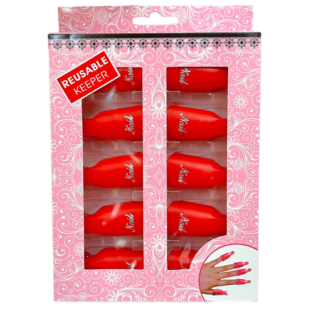 Набір багаторазових пластикових ковпачків - кліпс для зняття гель лаку, 10шт./уп. Червоний