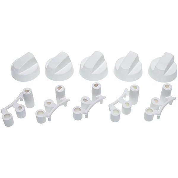 Універсальний комплект ручок призначений для регулювання різних функцій на плиті. Він має кілька перехідників, які дають змогу встановлювати ручки на різних типах регуляторів.