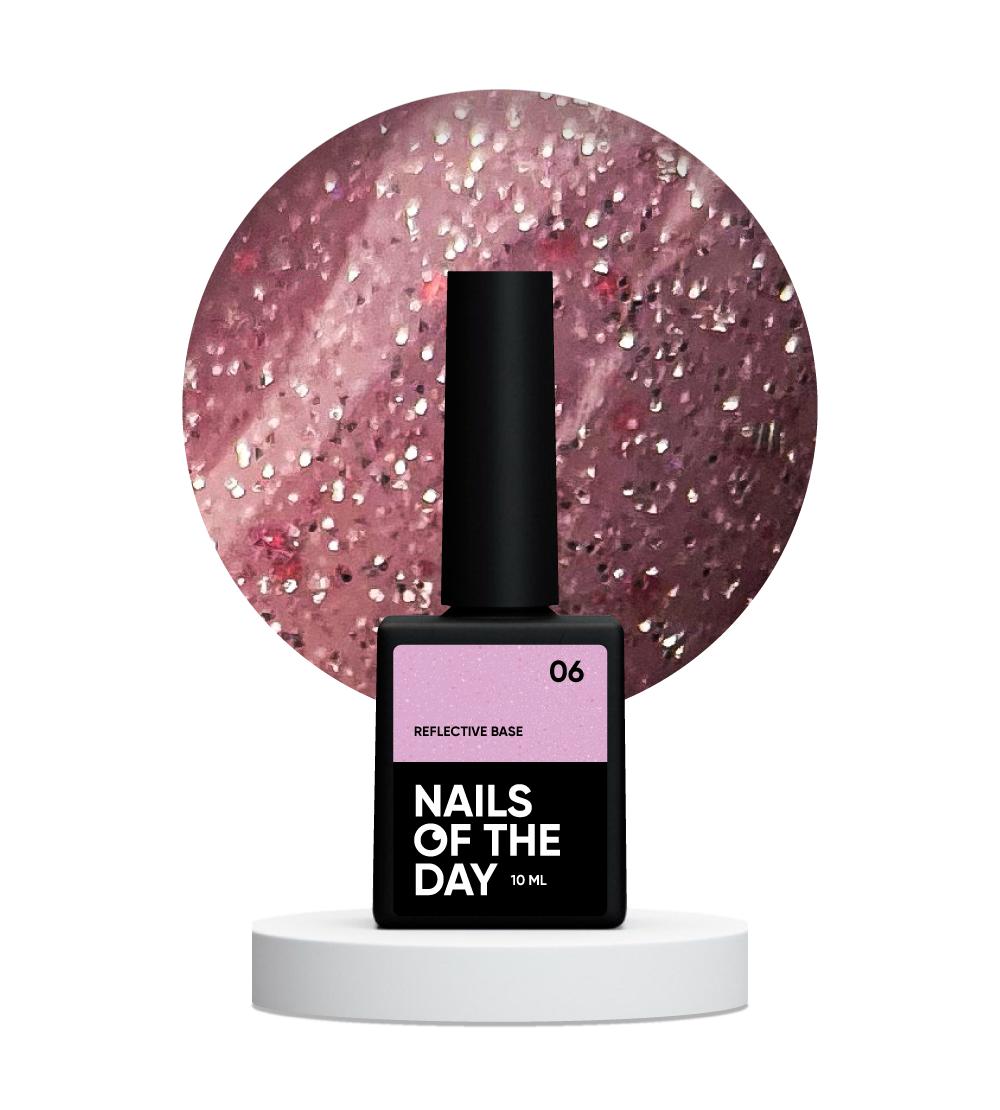 Nails of the Day Reflective base 06 – камуфлююча світловідбиваюча база з шиммером (ніжно-рожева), 10 мл
