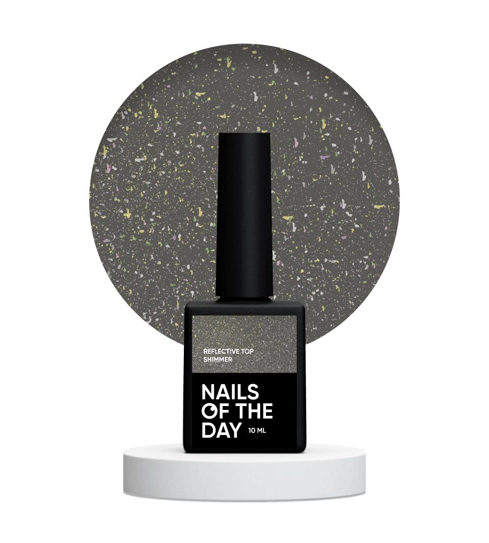 Nails of the Day Top Reflective Shimmer – світловідбиваючий топ без липкого шару для нігтів (золотистий шиммер), 10 мл