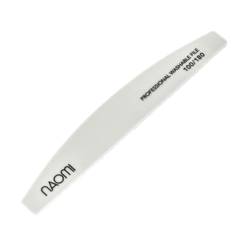 Пилка для нігтів Naomi 100/180 напівкруглої форми використовується для роботи з нарощеними нігтями. Сторону з абразивністю 180 грит можна використовувати для підготовки натуральної нігтьової пластини до процесу моделювання та корекції за допомогою гелю або акрилу. Інструмент простий у догляді та дуже зручний у застосуванні, тому широко використовується професійними майстрами. Має високу якість та гарну функціональність. Колір - білий.