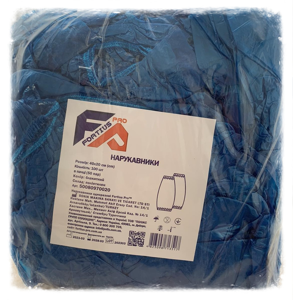 Нарукавники одноразові поліетиленові Fortius Pro 40х20 см (100 шт/пачка) блакитні