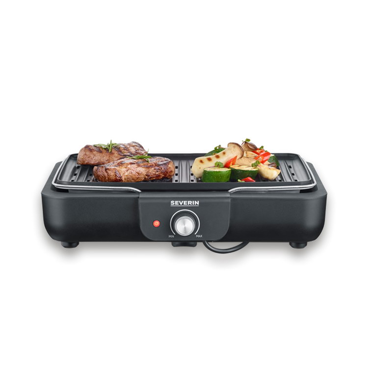 Потужний і зручний гриль для дому та відкритого повітря. Завдяки потужності 2300 Вт він нагрівається за 4 хвилини 30 секунд, що дозволяє швидко почати готувати. Лита алюмінієва пластина рівномірно розподіляє тепло, а ребриста решітка створює ефект традиційного барбекю. Гриль підходить для використання в приміщенні та на вулиці завдяки низькому рівню диму. Регульований термостат дає змогу точно контролювати температуру для різних страв. Всі знімні частини можна мити в посудомийній машині, що робить догляд простим