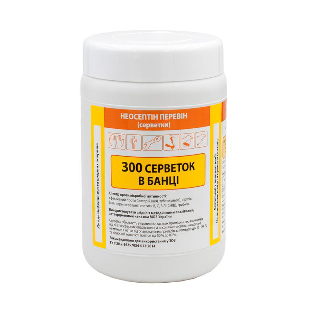 Неосептін Перевін (Етасепт) — серветки для дезінфекції поверхонь і засобів одноразового використання, 300 шт.