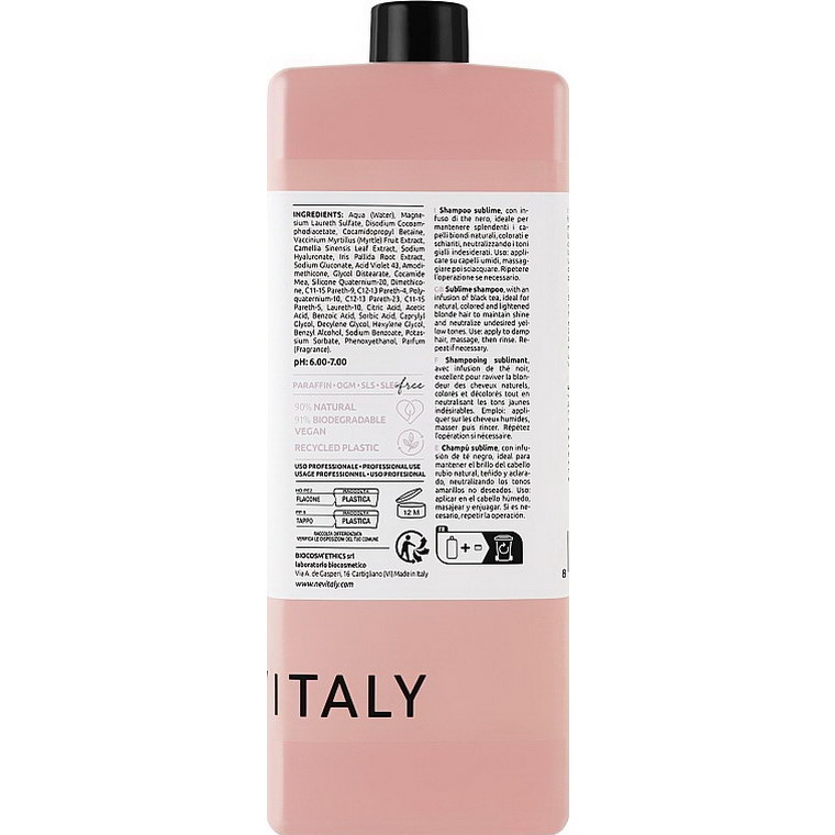 Якщо ви є власниками білявого фарбованого волосся, то не раз стикалися з появою жовтизни. Шампунь Blonde Sublime бренду Nevitaly розроблений для ефективної нейтралізації жовтих та помаранчевих півтонів. Засіб створений на основі настою чорного чаю — ідеального компонента для збереження блиску волосся, а також екстракту чорниці, який нейтралізує небажані кольори.