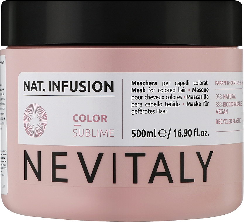 Щоб надовго зберегти глибину і насиченість відтінку фарбованого волосся, використовуйте маску бренду Nevitaly. Завдяки цінним оліям та екстрактам вона забезпечує живлення структури локонів і надає їм гарного вигляду. Засіб запобігає вимиванню кольору, а також захищає його від деструктивного впливу ультрафіолету.