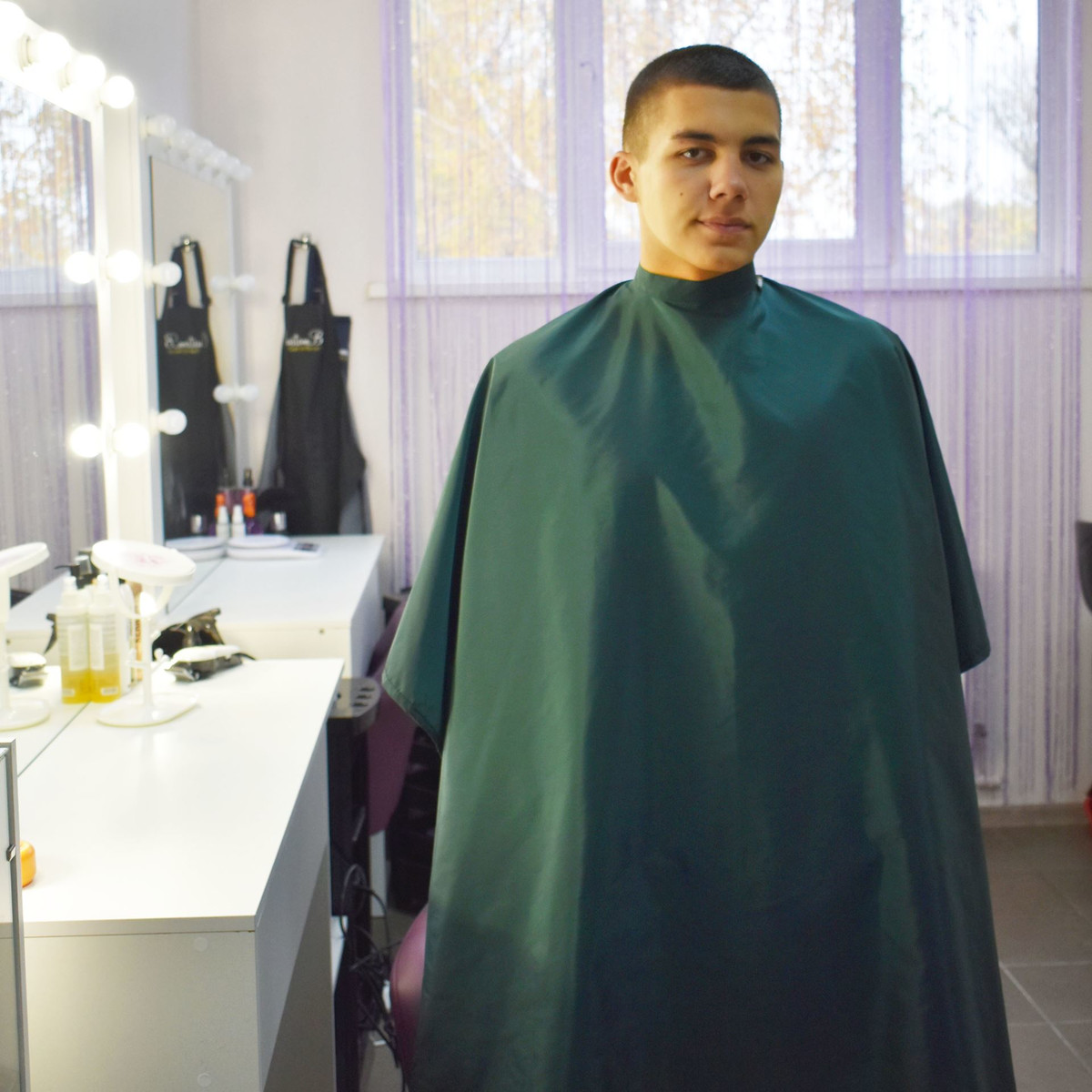 Накидка перукарська темно-зелена (Кнопки) водостійка Nibano 4901.BG