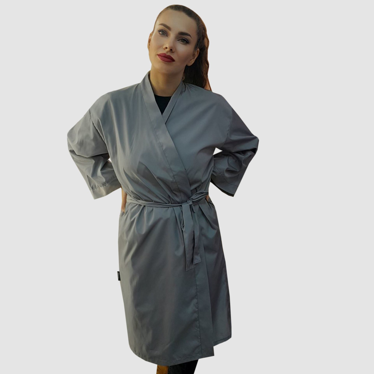 - Колір халату: Сірий