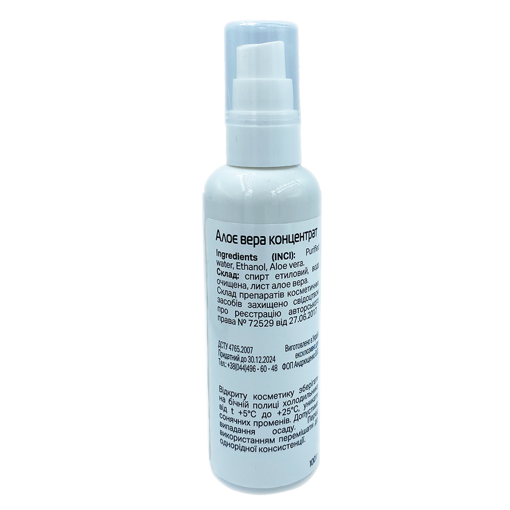 Склад: спирт етиловий, вода очищена, лист алое вера.
